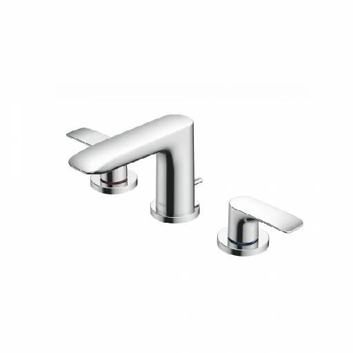 خلاط فاخر للحمامات بتصميم ثلاثي الفتحات يمنح مظهراً أنيقاً وعصرياً، مع تشطيب كروم لامع مقاوم للتآكل.