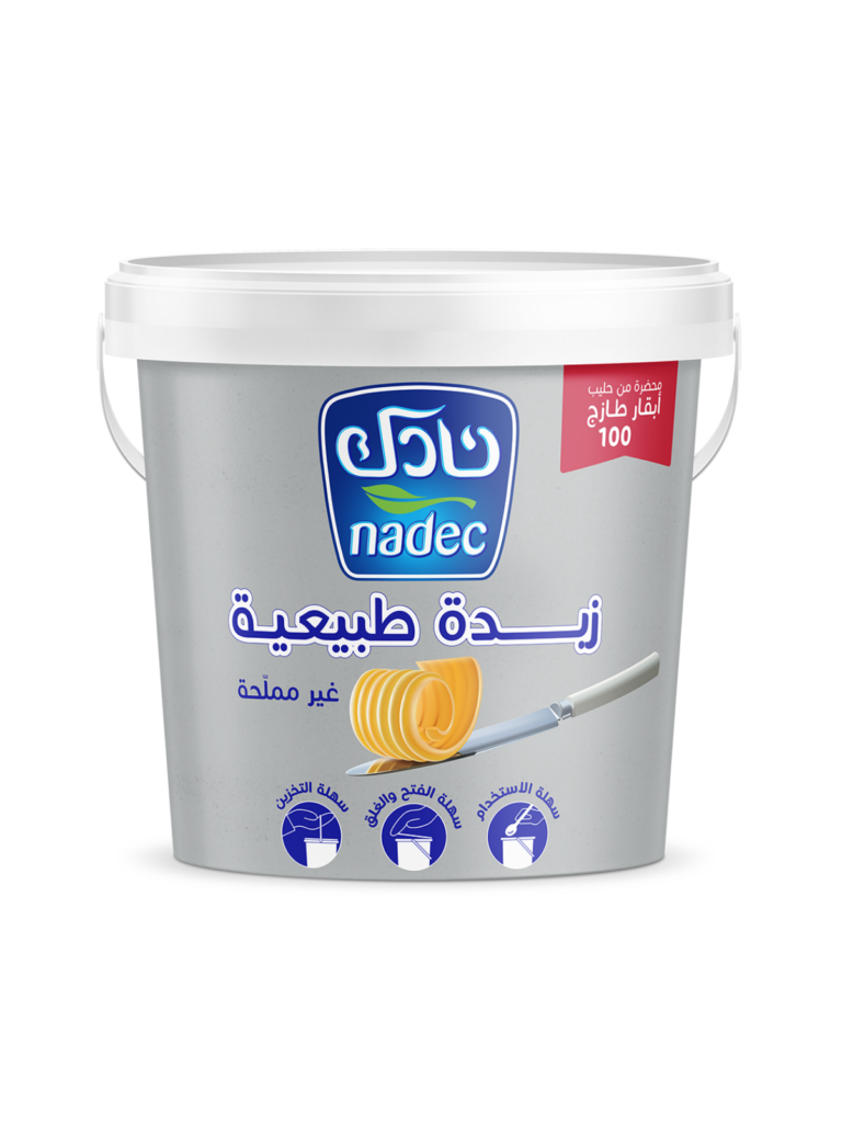 - الزبدة الطبيعية – نقية وكريمية، مصنوعة من أفضل منتجات الألبان لتمنحك قوامًا ناعمًا ونكهة غنية تعزز من طعم الأطعمة والحلويات.
