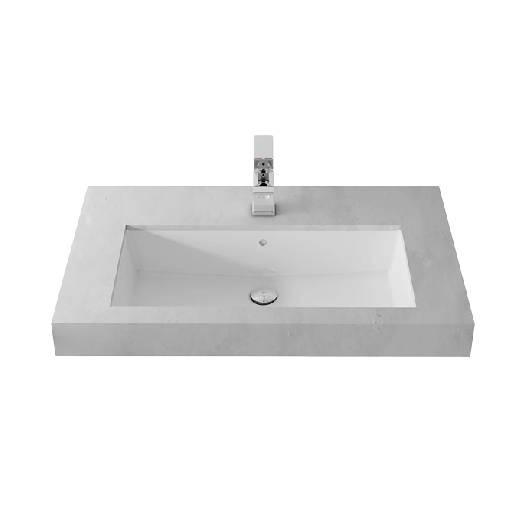 حوض بورسلين متين بتصميم مدمج تحت الرخام يمنح الحمام مظهراً بسيطاً أنيقاً ومقاوماً للماء.