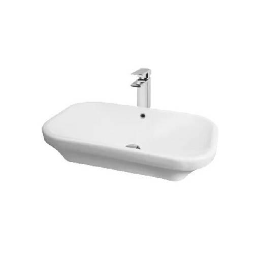 حوض أنيق بتصميم مربع فوق الكونتر مصنوع من السيراميك الأبيض عالي الجودة، مناسب للحمامات الحديثة.