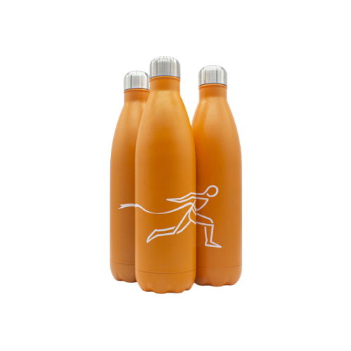 - زجاجة ماء بلون برتقالي مميز تجمع بين التصميم العصري والعملية.