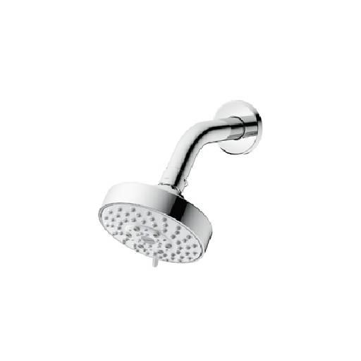 Compact 100mm round chrome shower head offering 5 water flow patterns and concealed connection.