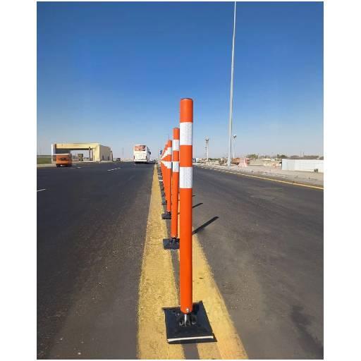 Impact‑resistant flexible posts that guide traffic and define lanes; bend on impact and spring back to shape.